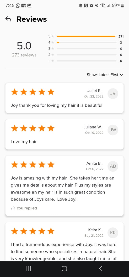 Joy Nyree is a Master Colorist, Texturologist and Owner of No More Hats Hair Salon. She was born into a family of hairstylists and barbers, which inspired her to master working with all hair types and textures.